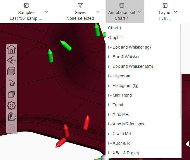 To choose which set is used when Annotation are opened from the 3D model or used in a Layout, select an option from the Annotation Set menu at the top of the 3D Viewer page.