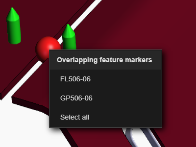 When more than one feature marker is located at the same coordinates, the first click opens a menu that prompts you to choose which feature you want to select.