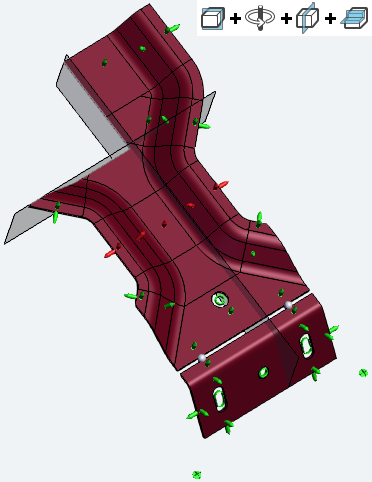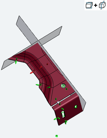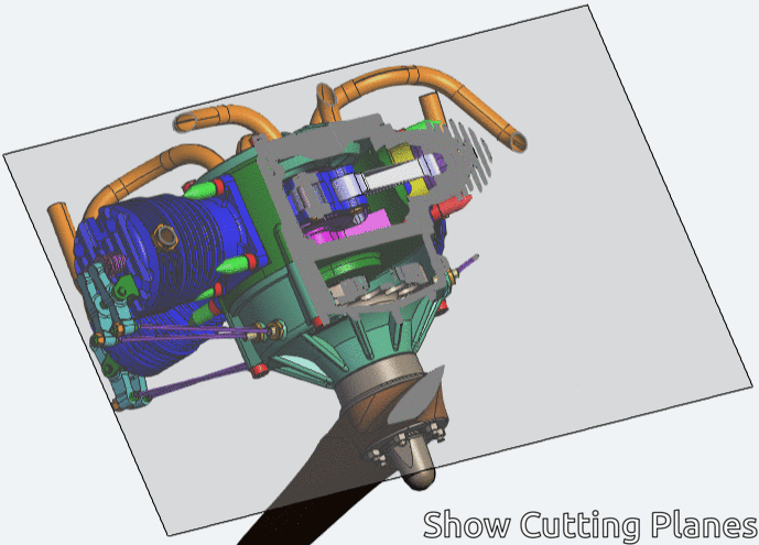 Cutting Planes are used to hide geometry on one side of a plane. One or more cutting planes can be added to the model to create a View that shows only part of the model. The X, Y and Z axis planes can be used in an AND/OR function. Markers for the Features located on the part of the model 'cut' out are removed from the view if the cutting plane excludes the center point of the marker. When enabled, the cutting plane boundary sizes automatically adjust to fit within the bounding box of the model. The cutting planes have the option to show or hide the outline of the plane, but while the plane is hidden it cannot be moved.