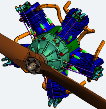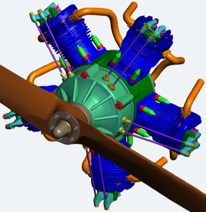 Shaded with Lines - [Default Mode] Sets the rendering mode to Phong Shading with Lines. This mode displays the model geometry as shaded and opaque, with the addition of visible, unobscured lines. Colors are obtained from the CAD file. This is essentially a combination of the Shaded and Hidden Lines modes. This mode may display some parts better than just Shaded. | |