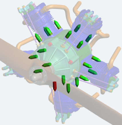 | Shaded - Sets the rendering mode to Phong Shading. Colors are obtained from the CAD file. This mode displays the model geometry as shaded and opaque. | |||