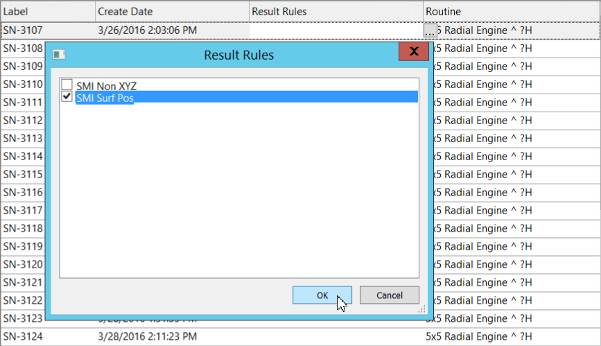 From the Results Rules dialog, enable the check box for at least one of the available rules (there may only be one).
