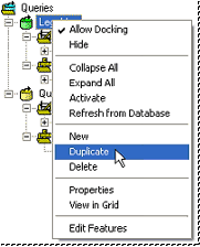 To duplicate a query, right click on the original query you wish to copy and select Duplicate Query from the context menu.