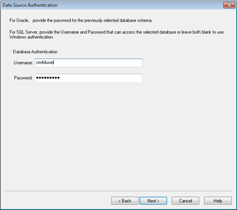 Enter your User ID and Password, then click Next. If you are using a SQL Server database with Windows Authentication, leave these fields empty.
