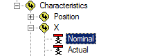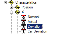 Select the association Feature>Characteristics>X>Deviation.