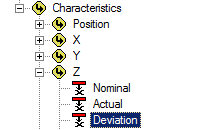Select the association Feature>Characteristics>Z>Deviation.