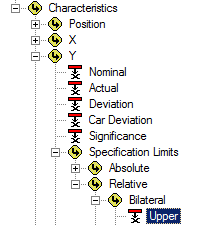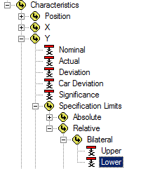 Select the association Feature>Characteristics>Y>Specification Limits>Relative>Bilateral>Lower.