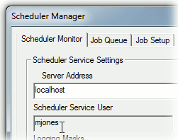 The user set in the steps 1-3 will appear in the Scheduler Service User field of the Scheduler Monitor tab.