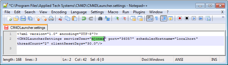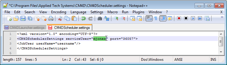 Open the file CM4DScheduler.settings in a text editor.