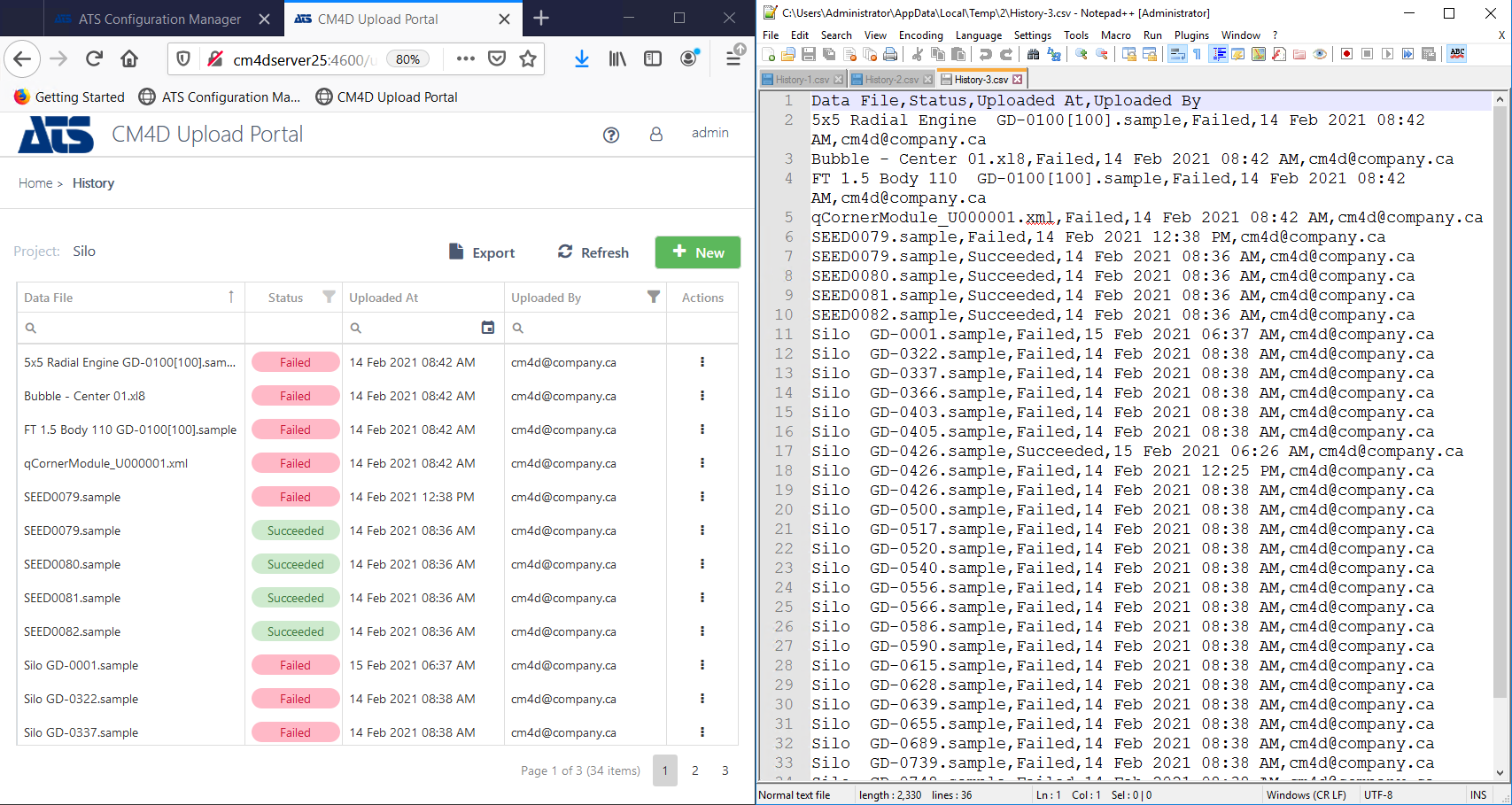 The file has been uploaded to the server to be picked up for processing into the database. A file may remain in this state for a long period of time depending on the state of the CM4D processing system. For example, if the project has been suspended temporarily, the services are stopped or there is a large queue of files waiting for processing. |