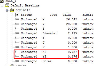 10. In the Feature Editor, check the value of the Nominals for the Type X2 and Y2.