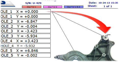 You can also assign 3D leader locations to an alternate location using the Coord X3, Y3, and Z3 feature types. The Coord XYZ 3 associations are used solely to assign 3D leader locations to a location other than that of the standard Nominal XYZ point. If no XYZ3 values are found, CM4D will then look for any Coord X2 or Y2 values. If neither of these exist, then the standard nominal points will be used for the leader lines.