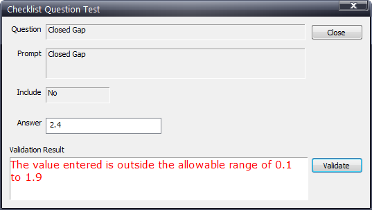 You can test your validation settings while still within the Admin program. This allows you to ensure that you have configured the validation items correctly so that the desired answer is defined as the "right" answer.