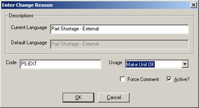 2. Click Add to enter a new Change Reason or Edit to modify an existing one.