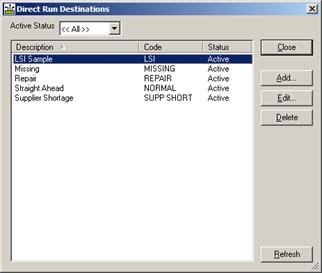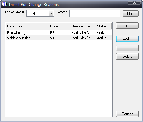 These are used when changing the "hit" status of a Direct Run routing record. A reason is required whenever the status of a Direct Run record is modified.