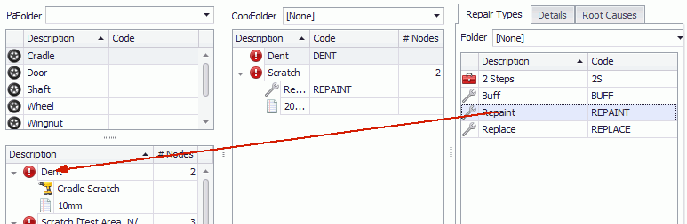5. Drag and drop details from the right-hand pane onto the required concern in the lower-left pane.