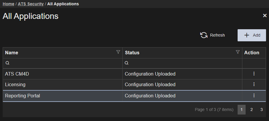 Following the successful installation of ATS Reporting Portal the status of the registered ATS Reporting application in ATS Security should be set to Configuration Uploaded. This indicates that the ATS Reporting application rights have been uploaded to ATS Security and can be assigned to ATS Security roles, which in turn can be assigned to users.