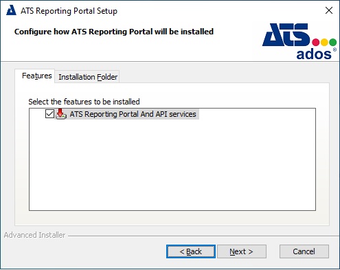 The ATS Reporting Portal And API services check box is ticked by default on the Features tab.