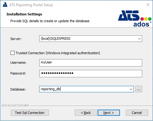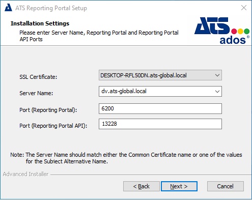 Server Name: Enter the name of the machine that hosts the ATS Reporting Portal.