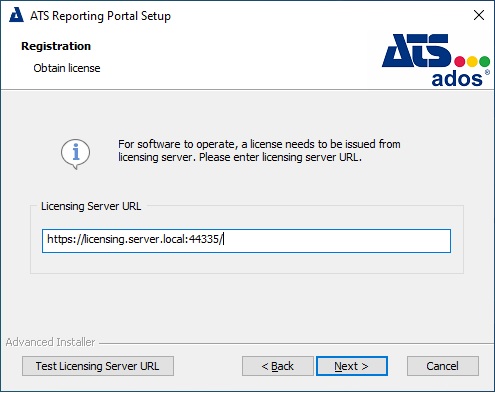Enter the Licensing Server URL. If an ATS Licensing Server is detected, then this form is omitted and the installer will automatically detect and configure the URL.