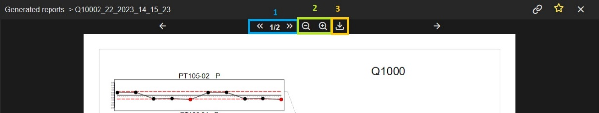 When a report (PDF file) selected from the search results is loaded in the viewer you can: