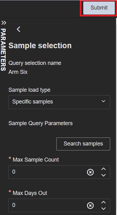 The Search samples button can be used for searching samples with previously configured filters and data for Max Sample Count and Max Days Out fields. If you click search, a list with samples is shown and you can select/remove them from the list.