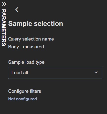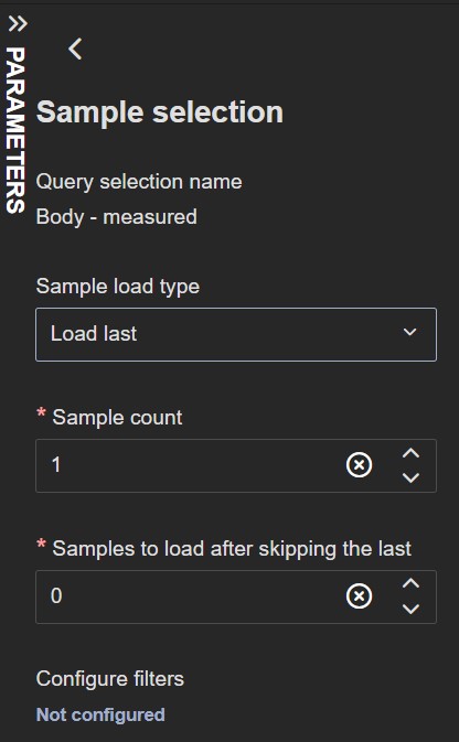 The Load last sample load type presents two fields: Sample count and Samples to load after skipping the last. Filters can also be added under Configure filters.
