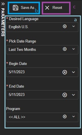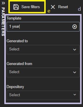 The CM4D generated type of reports use the parameters panel to specify search conditions that help find generated PDF files in certain user depository (network location). The report viewer in this case has two functions: