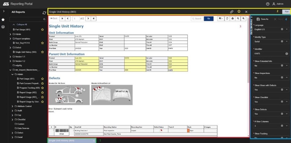 The ATS Reporting Portal enables viewing of reports in a multi-document viewer where the user has access to multiple loaded reports using tabs.