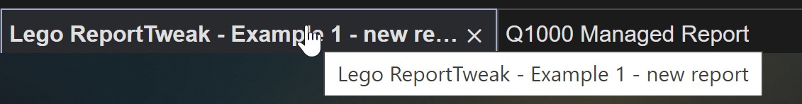 When the complete report name does not fit the tab size standing over the tab with the mouse pointer will display the complete name in a tool-tip.
