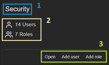 Each card has a title(1), content area(2) and shortcut links(3) which, when clicked, load different modules or blades of the respective plug-in.