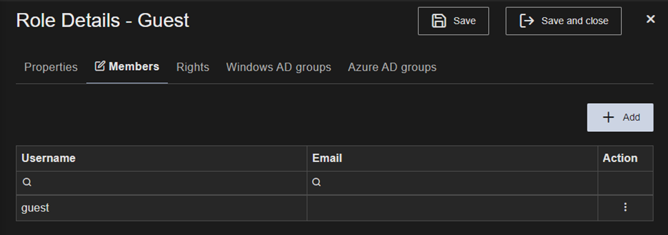 Tabbed blade: This blade displays different aspects of a complex item. For example, in Security, the User details blade has three tabs in the blade menu showing the user Profile, Roles and Application info. Data in each tab needs to be saved separately. The content of the tabbed blade can itself contain grids, forms or both.