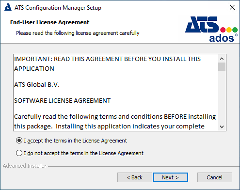 Download and unpack the setup for ATS Security and Configuration manager.