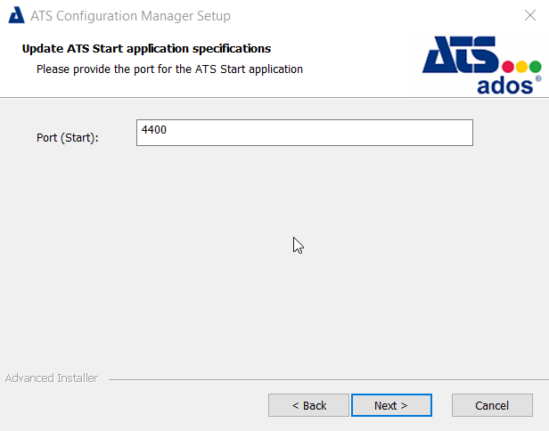 Port (Start): Enter the port number to be used for ATS Start. The default is 4400.