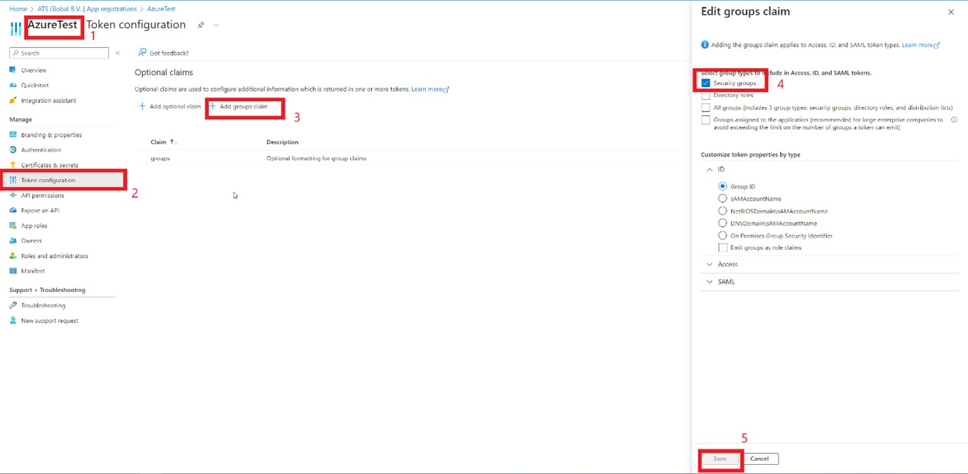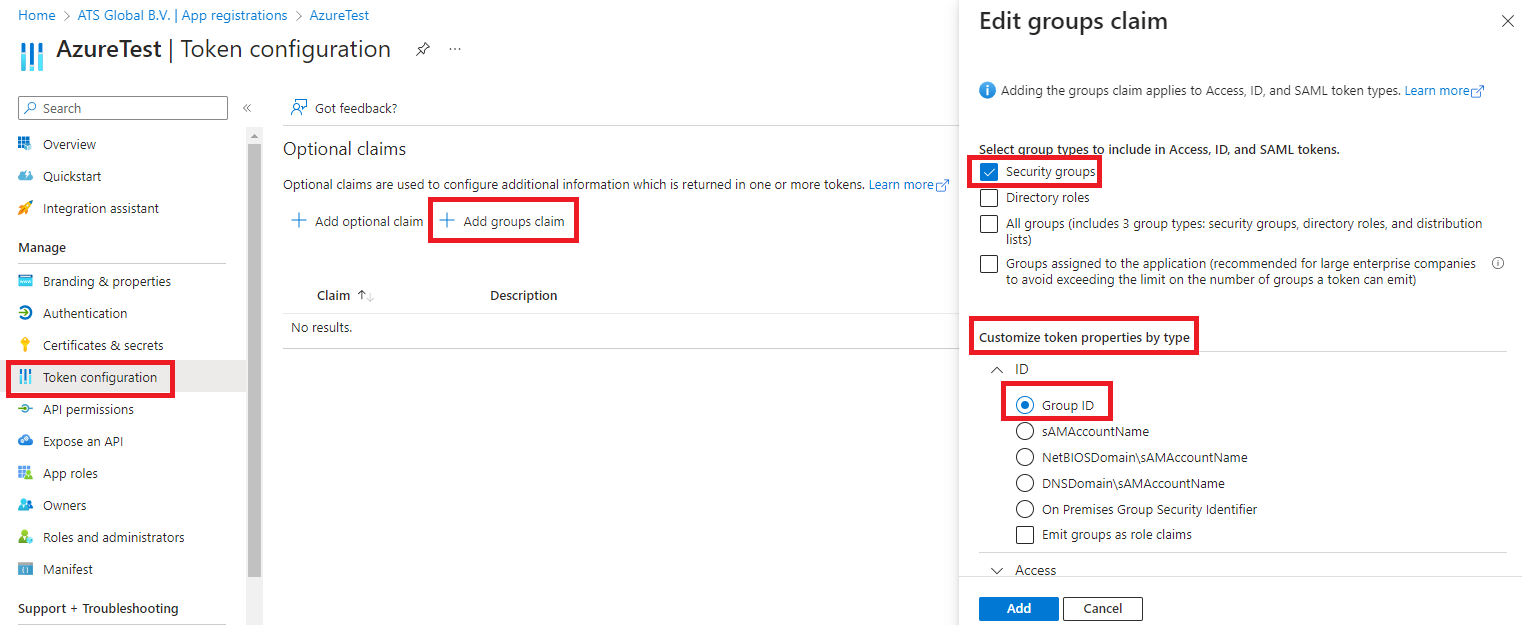 Optional: To configure security groups to be added as an optional claim to an Azure application, do the following: