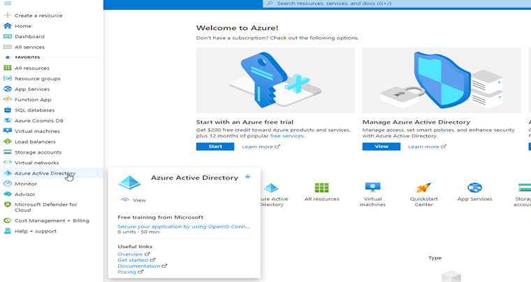 In the main menu navigate to Azure Active Directory.