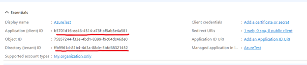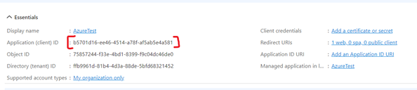 After the application is registered, the application information is displayed. Copy the Application (client) ID value.