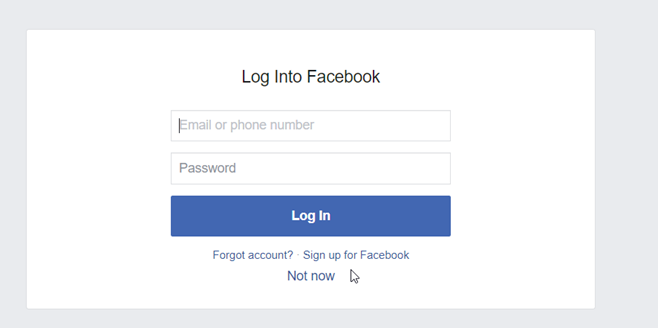 Press the Facebook logo. The Facebook login form is displayed.