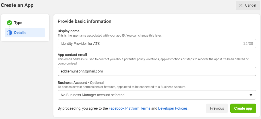 Enter a Name for the identity provider i.e. Facebook.
