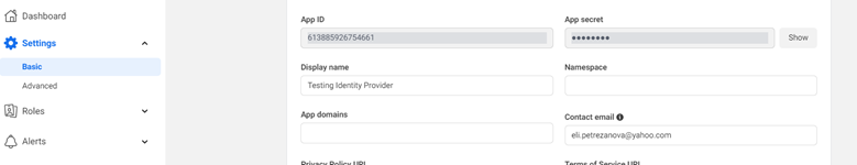 Adding new identity provider of type Facebook. This change will take effect after application restart.