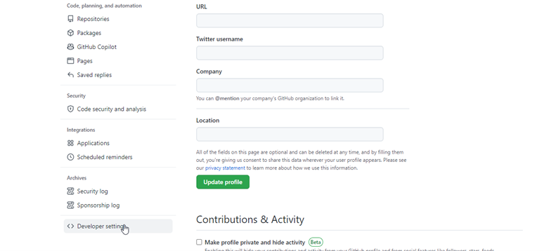 Scroll down and click on the Developer settings option.