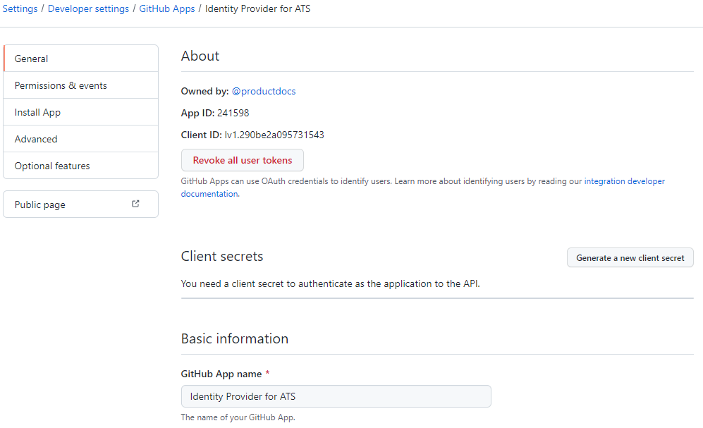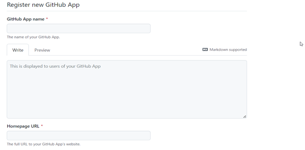 Click on the Create GitHub App button. The following screen will be displayed.
