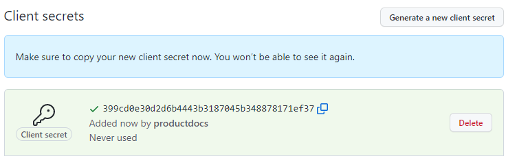 Press the Generate a new client secret button.