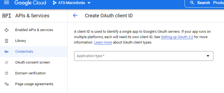 Click on the + Create credentials button and click on OAuth client ID.