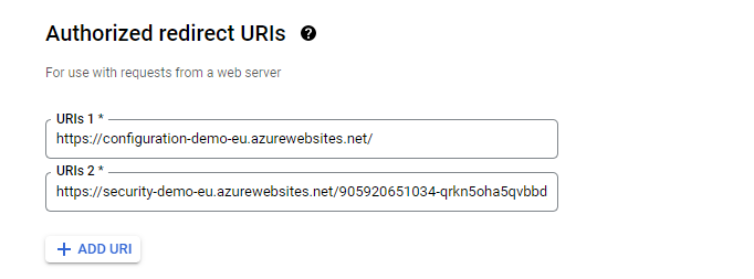 In the Authorized redirect URIs section click on the Add URI button and enter the URI value for the application.