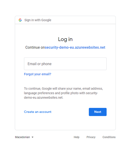 Press the Google logo. The Google login page is displayed.