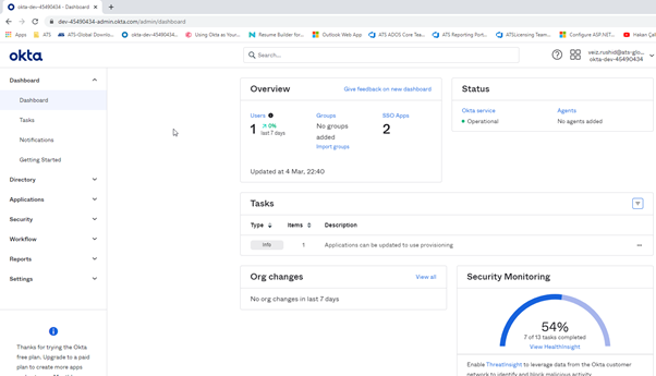 Signed in to Okta as admin.