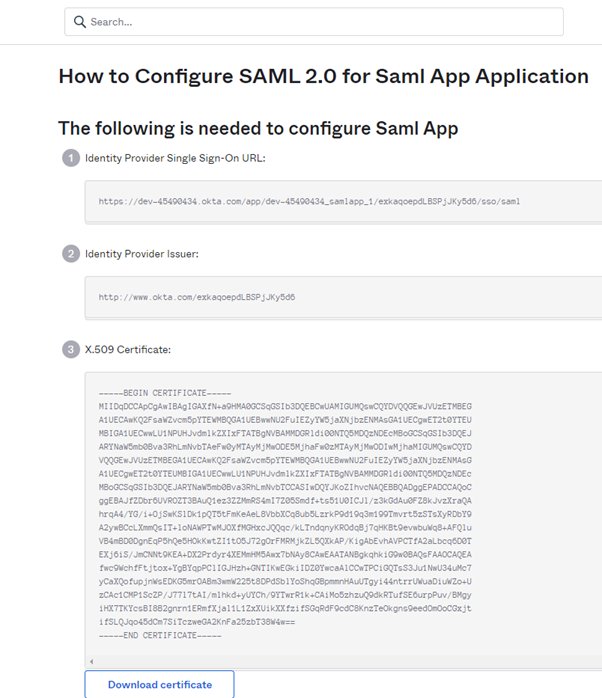 Check the provided link for how to create a SAML application in Okta :