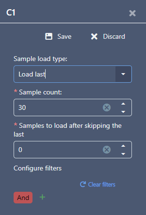 Each filter parameter can be set to a value, which will be the pre-selected value loaded in to the matching parameter. When a filter value is not set the filter parameter in the Parameters panel will not be set or selected.