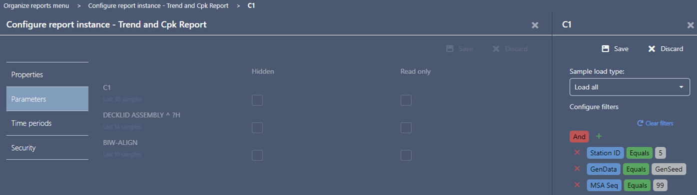 Read only parameters: If a filter parameter is marked as read-only, it cannot be edited and the search will be made based on the set value.